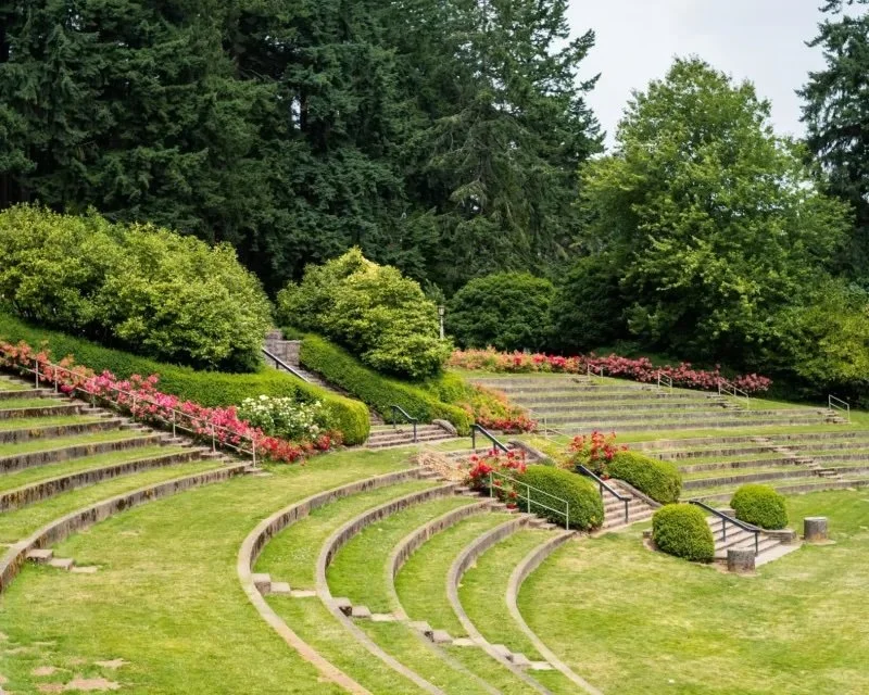 The International Rose Test Garden is a rose garden in Washington Park in Portland, Oregon, United States. There are over 10,000 rose bushes of approximately 650 varieties. The roses bloom from April through October with the peak coming in June, depending on the weather.